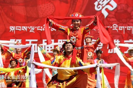 國家旅游地理 西藏阿里8月3日訊 8月3日,當(dāng)?shù)厝罕娫陂_幕式上表演富有民族特色的歌舞《美麗的阿里》。當(dāng)日,西藏阿里地區(qū)第五屆象雄文化旅游節(jié)在獅泉河文化廣場開幕。此次文化旅游節(jié)將舉辦阿里象雄文化研討會(huì)、旅游紀(jì)念品展覽、攝影展等十余項(xiàng)活動(dòng)?! ? 新華社發(fā)(蔣先平 攝)