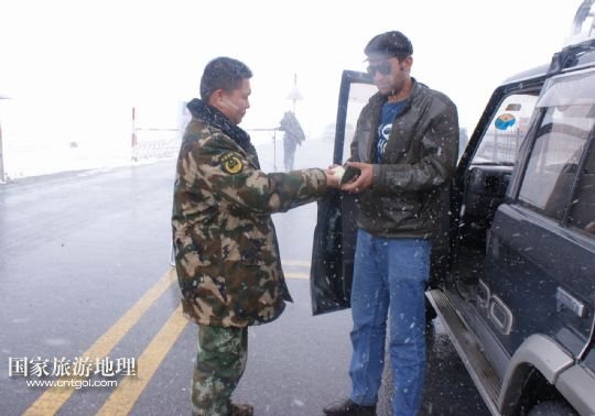 國家旅游地理 新疆喀什8月15日訊 8月14日,紅其拉甫邊檢站執(zhí)勤哨兵引導(dǎo)車輛通行。8月14日,新疆塔什庫爾干塔吉克自治縣迎來降溫降雪天氣,積雪厚度達5厘米,溫度降至零攝氏度左右。據(jù)了解,因連續(xù)降雪,314國道海拔5100米的中巴邊境紅其拉甫口岸附近約20公里路段交通受到影響。 /新華社發(fā)(韓廣寧攝)
