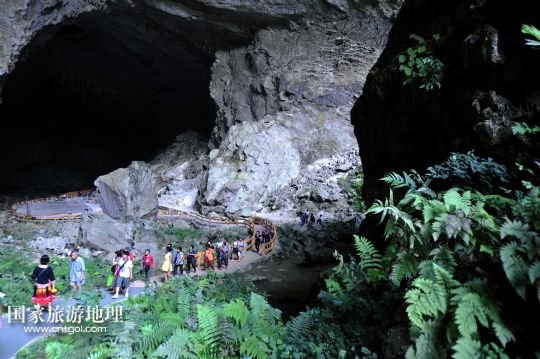國家旅游地理 廣西河池8月17日訊 游客在廣西河池市鳳山縣三門海景區(qū)游覽壽河源(8月15日攝)。炎炎盛夏,在巖洞里享受別樣清涼,成為越來越多游客的首選。在持續(xù)高溫的助推下,廣西各地巖洞的游客流快速增長,呈現(xiàn)不斷升溫趨勢。 /新華社記者 周華攝