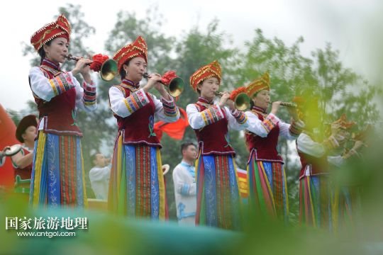 國(guó)家旅游地理 湖北宜昌9月17日訊 9月17日,宜昌長(zhǎng)陽土家族藝術(shù)團(tuán)在現(xiàn)場(chǎng)表演。當(dāng)日,部分來自澳大利亞、西班牙、俄羅斯、捷克、蒙古國(guó)的藝術(shù)團(tuán)來到湖北宜昌清江畫廊景區(qū),與當(dāng)?shù)厥忻襁M(jìn)行民俗藝術(shù)表演交流。