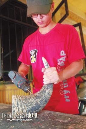 國(guó)家旅游地理 廣西柳州11月11日訊(記者陸旺楊春) 牽手漫步龍?zhí)睹琅?,并肩靠背沐浴晚秋暖?yáng),你會(huì)時(shí)常聽到一串串動(dòng)人的音符:它時(shí)而渾厚圓潤(rùn)、清脆響亮,時(shí)而輕靈縹緲、悠長(zhǎng)凄美。不忍打破這份寂靜閑情,卻又忍不住猜想:這是何方人士,用何種樂器,吹拉彈撥出如此佳音?穿越叢林,循聲走去,瑤寨庭前,幾個(gè)年輕男女手握蘆笙,身子左搖右晃,吹得正起興。步入瑤寨一樓才發(fā)現(xiàn),這里儼然一個(gè)生產(chǎn)民族樂器的大工廠:木板、竹竿、鐵鋸、膠水、油漆,以及形狀酷似牛頭、牛腿、魚身、龍身等顏色各異、五花八門的樂器……一位正在給樂器上漆的中年人梁志榮告訴記者,這是龍?zhí)豆珗@正在籌建的民族樂器館,也是魚峰區(qū)創(chuàng)建廣西文化強(qiáng)區(qū)的特色景區(qū)之一,他現(xiàn)在是大龍?zhí)睹褡逅囆g(shù)團(tuán)團(tuán)長(zhǎng),研究、制作民族樂器將近20年,曾獲“廣西民間工藝大師”和“十佳民間藝人”稱號(hào)。