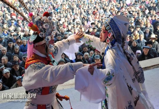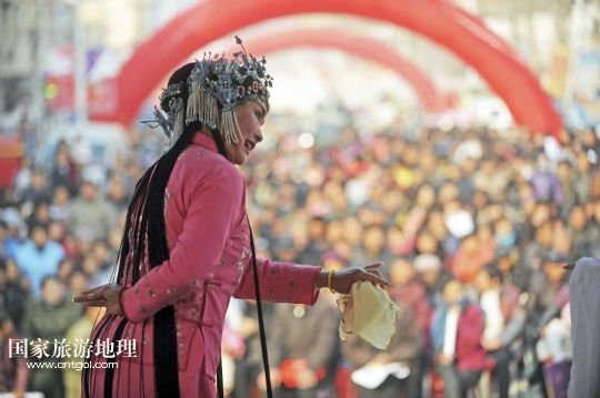 國家旅游地理 1月2日訊 2014年1月2日,在安徽省亳州市譙城區(qū)十河鎮(zhèn),演員在表演亳州非遺劇種“二夾弦”。當(dāng)日,安徽省亳州市譙城區(qū)2014年“三下鄉(xiāng)”活動啟動,當(dāng)?shù)蒯t(yī)療、文化、科技部門的“三下鄉(xiāng)”服務(wù)隊(duì)到基層開展文化、衛(wèi)生、科技、法律下鄉(xiāng)活動,為基層群眾送上新年的問候。 /新華社發(fā)(張延林 攝)