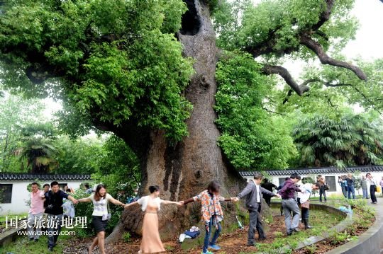 國家旅游地理 江西上饒5月18日訊 5月17日,游客在江西省德興市海口鎮(zhèn)??诖迩旯耪僚酝嫠?。江西省德興市??阪?zhèn)海口村有一棵1800多歲“高齡”的巨型古樟樹,歷史上曾遭受過多次雷擊、火災(zāi)等,其中最近的一次發(fā)生在2010年10月1日,由于村內(nèi)孩童進(jìn)入可容納幾十人的樹洞內(nèi)玩耍,不慎引發(fā)火災(zāi),致使大火從樹洞里燒起,讓這棵千年古樟幾近滅頂。此后,當(dāng)?shù)卮迕褡园l(fā)捐款近6萬元,請來有關(guān)專家救治。經(jīng)過近4年的精心護(hù)救,如今這棵千年古樟再度逢春,枝繁葉茂,吸引了各方游客前來觀賞。 /新華社發(fā)(卓忠偉 攝)