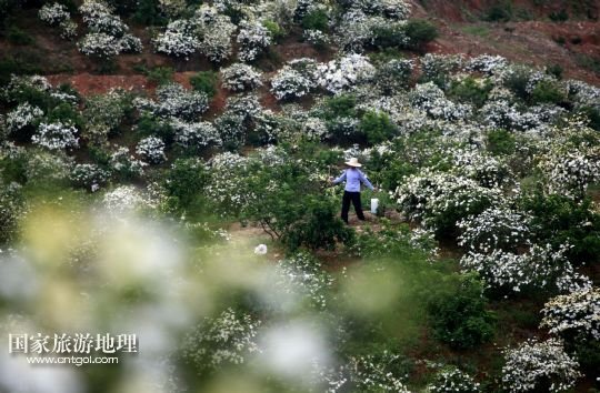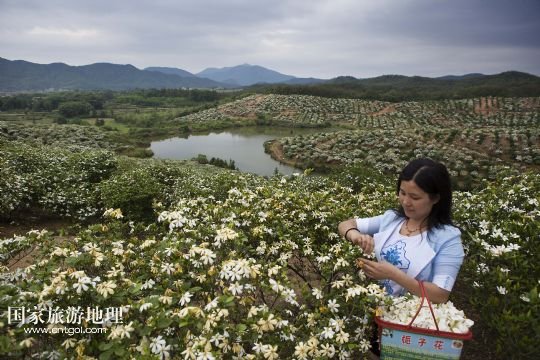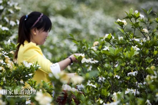 國家旅游地理 江西九江5月24日訊 5月24日,游客在黃梔子種植基地采摘梔子花。小滿時節(jié),在位于鄱陽湖畔的江西省九江市都昌縣土塘鎮(zhèn)潭湖村的坡嶺上,春輝黃梔子專業(yè)合作社6個種植基地的兩千多畝黃梔子全面進入盛花期,種植園內(nèi)芳香四溢。黃梔子是傳統(tǒng)中藥材,花朵可觀賞、食用,果實可用于醫(yī)藥、染色、化妝品等領域。成立于2007年的都昌春輝黃梔子農(nóng)民專業(yè)合作社近年來致力于實施科技推廣、標準化種植和專業(yè)化經(jīng)營黃梔子,將黃梔子從“飄香”經(jīng)濟延伸到“染色”“藥用”深加工,進軍省內(nèi)外市場。 /新華社發(fā)(傅建斌 攝)