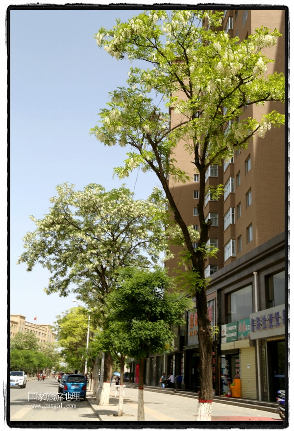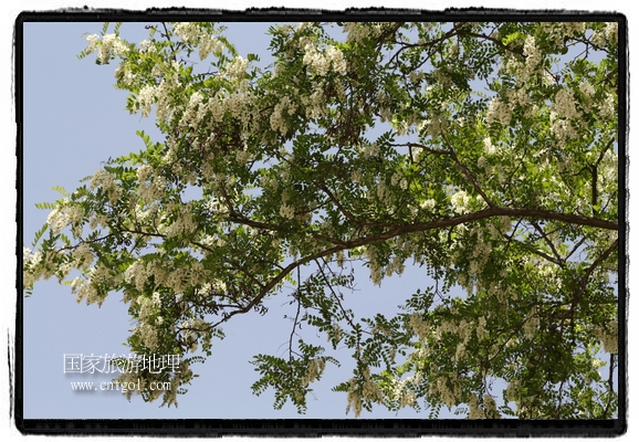 國(guó)家旅游地理 甘肅平?jīng)?月31日訊(通訊員 鄭兵 攝影報(bào)道)日前,甘肅省平?jīng)鍪谐菂^(qū)各大主要街道兩旁的槐樹(shù)開(kāi)滿花朵,一簇一簇,一串一串,白的像雪,美得像畫,冰肌綽約,清素高雅,滿街道彌漫著槐花的馥郁香氣,讓來(lái)往的行人為之陶醉。宋朝大文豪蘇東坡曾有詩(shī)云:“槐林五月蕩瓊花,郁郁芬芳醉萬(wàn)家。”據(jù)悉,槐花除了觀賞意外,用槐花做的湯飯還有開(kāi)胃解毒瀉火等功效,是食藥兩用的的極品,被譽(yù)為“天賜的禮物”。