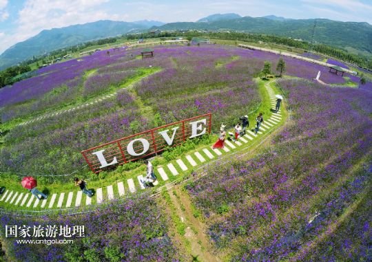 國家旅游地理 浙江溫州6月16日訊 6月16日,在浙江省溫州市平陽縣山門現(xiàn)代農(nóng)業(yè)園,游客徜徉在馬鞭草花海里。花海里豎立的一個(gè)“LOVE”造型格外醒目。新華社發(fā)(蘇巧將 攝)