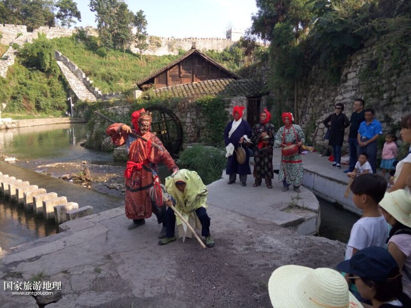 這是福泉民間老藝人在表演福泉陽(yáng)戲《二郎鎖孽龍》。福泉陽(yáng)戲,所謂陽(yáng)戲是指唱給活著的人聽的;也有陰戲,便是唱給死去的人聽的。陽(yáng)戲主要有兩種功能,一種是娛樂,另一種便是還愿納吉,意思是之前向天神祈求的事情實(shí)現(xiàn)了,于是便唱起陽(yáng)戲向天神還愿,同時(shí)也向天神祈求吉祥。福泉老藝人在表演陽(yáng)戲的時(shí)候,雖然言語(yǔ)不通,但依然可以感受到陽(yáng)戲所具有的獨(dú)特魅力,以及陽(yáng)戲中所蘊(yùn)含的民俗文化。