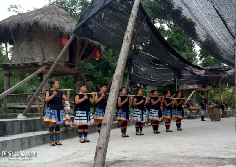 這是黔南荔波縣瑤寨姑娘在表演舞蹈。荔波瑤山白褲瑤是一個(gè)歷史悠久的古老民族,是一支長(zhǎng)期深居高山密林,過著刀耕火種,自給自足的封閉式狩獵民族,至今仍保存著母系氏族社會(huì)向父系氏族社會(huì)過渡的遠(yuǎn)古遺風(fēng),因其民族文化保存最完整而被聯(lián)合國(guó)科教文衛(wèi)組織賜予“人類文明的活化石”之稱。又因其崇拜太陽(yáng)神,信奉百神靈,圖騰與遠(yuǎn)在大洋彼岸的印第安人極為相似而被外界稱為“東方印第安人”。